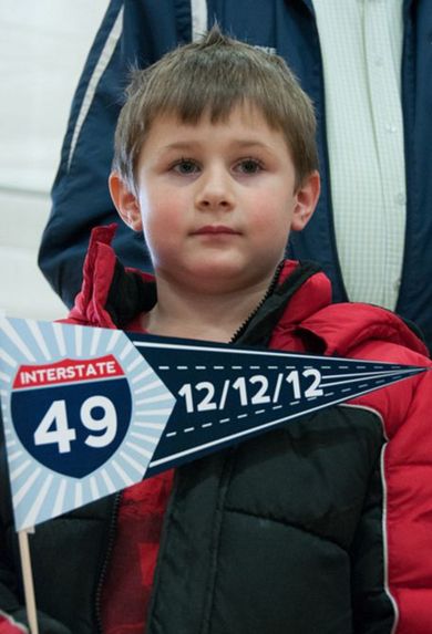 [[image:Main Page 4 Dec 13, 2012.jpg|390px|center|thumb|<center>''' One of the attendees at the unveiling of the I-49 sign at Joplin East Middle School gym on Dec. 12th.  About 180 miles of [http://modot.org/southwest/news_and_information/District8Release.shtml?action=displaySSI&newsId=179269 U.S. 71 is now officially I-49] between [http://modot.org/southwest/major_projects/I-49/documents/I49UpdatedCooridorMap.pdf Kansas City and Pineville] near the Arkansas border. You can watch the [http://www.youtube.com/watch?v=iji4NFXakLE&feature=plcp video shown at the unveiling of the I-49 sign].  '''  </center>]]