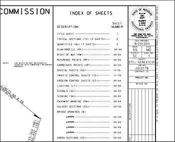 - Transportation Project Manager – All MoDOT generated roadway contract plans (title sheet, all roadway related quantity sheets, plan-profile sheets and cross section sheets, and roadway related special sheets generated in the district) and the roadway job special provisions index only.